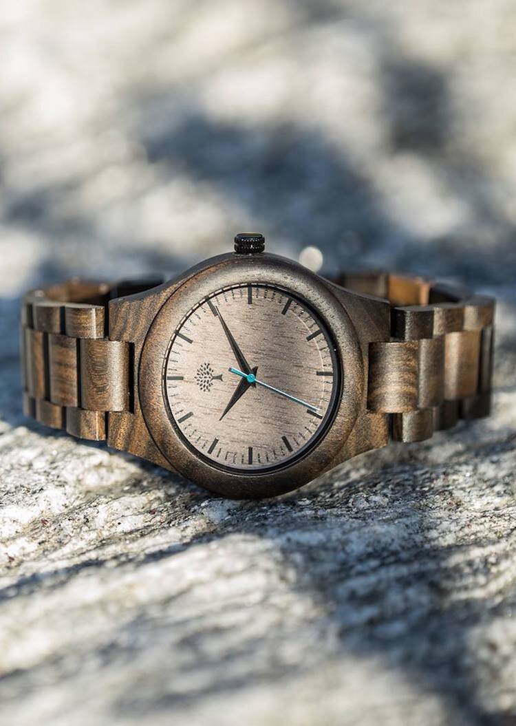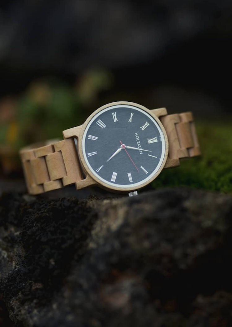 For the small team of makers at Holzkern (wood core in German), crafting accessories from raw and natural materials is a way to connect with ancient civilizations and the planet. Using wood and stone, this Austrian brand designs watches for men that are not only stylish and distinct, but also sustainable. Further, the company donates to reforestation projects and good social organizations for every watch sold.