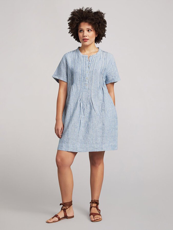 A t-shirt dress that can do it all? Check out family-run sustainable brand Faherty! The Gemina is made of 100 percent linen and then detailed with light shell buttons, a feminine pintuck, and pockets—what more could we ask for when it comes to sustainable summer style? Available in XXS through XXL and in five prints.