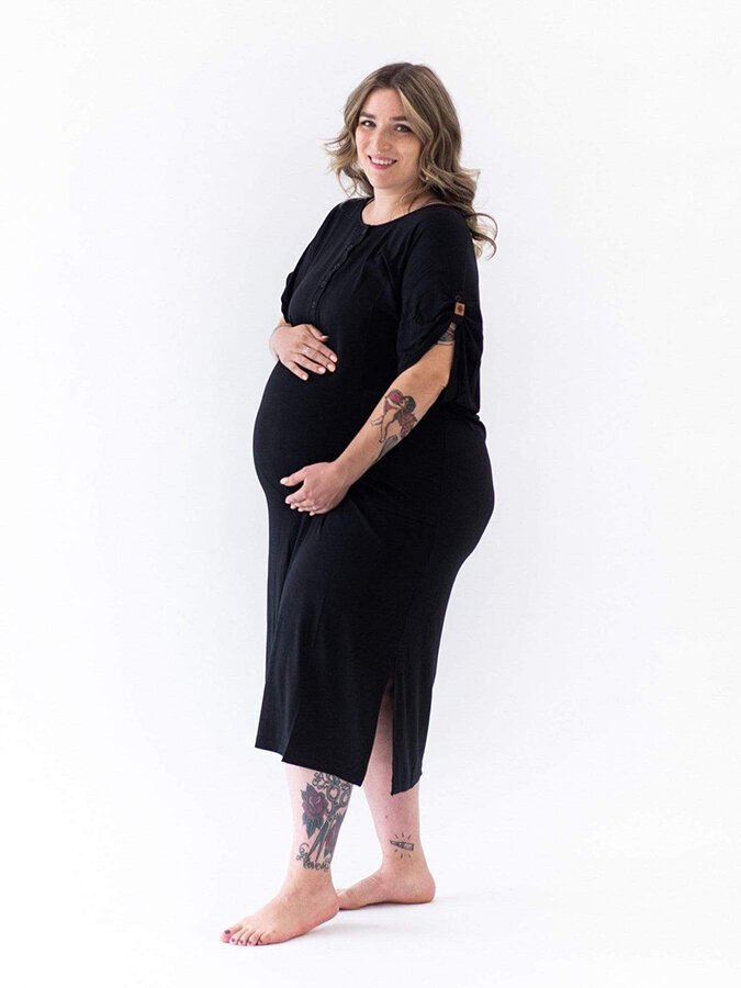 For expecting or nursing mamas, look no further than Kytebaby’s Lounge Dress collection. These soft and silky dresses are made almost entirely out of bamboo rayon, with adjustable sleeves and slits for shortening as needed—it gets hot out there sometimes! Sizing ranges from XS through XXL (US 20).
