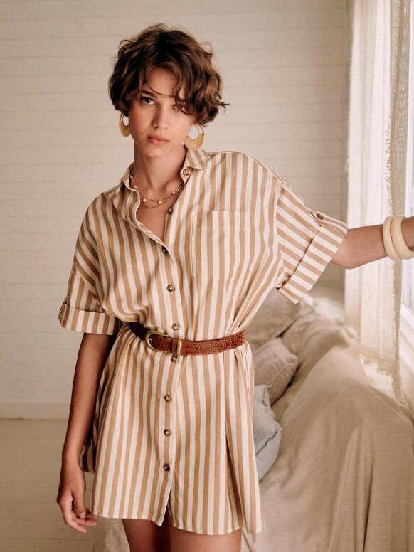 For a slightly oversized look, we love the Célia shirt dress. It’s ethically designed with all natural fabrics and gorgeous buttons down the front. It’s even shipped in recycled packaging. Go effortlessly from the office to happy hours to the beach.