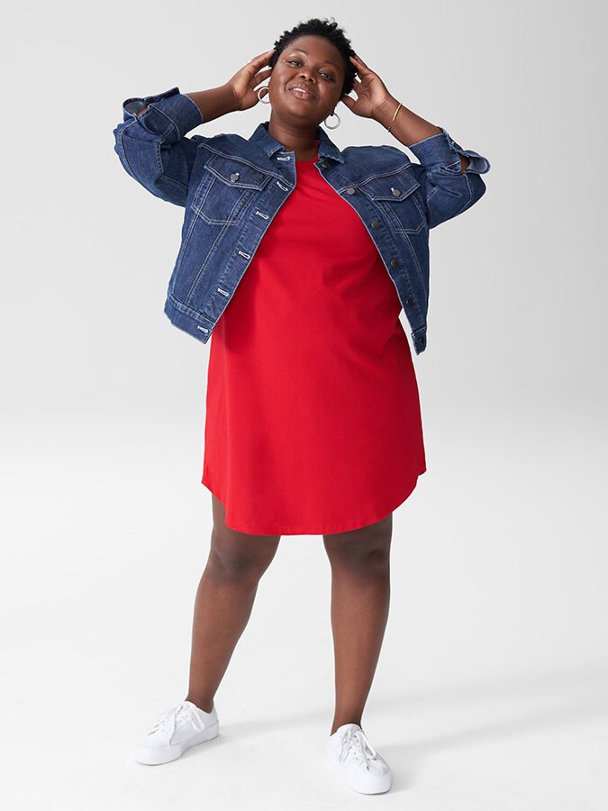 We love this versatile t-shirt dress from Universal Standard, available in four colors and a dozen sizes (4XS to 4XL). It’s perfect for layering and seasonal transitions. Did we mention it has pockets?