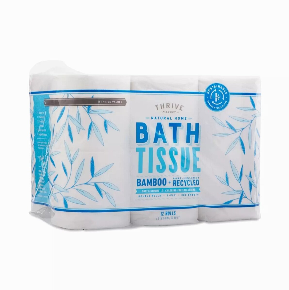 Thrive Market’s toilet paper comes in recycled packaging and is made from post-consumer recycled pulp blended with renewable bamboo. Naturally watered by rain, the bamboo is grown without pesticides or fertilizers. The final result is toilet paper equally free of toxins, including fragrance, chlorine, dyes, and color additives. The two-ply, 300-sheet rolls are safe for septic tanks.