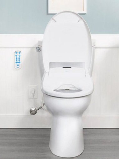Bio Bidet’s SlimGlow is 50 percent thinner than competing models, but that doesn’t mean it’s sacrificing service or quality. The attachment offers a sleek incline that contours to your natural seated position, and two separate nozzles (posterior and anterior) so that all booties receive equal love. Best of all, the SlimGlow’s equipped with a battery-operated night light—so you won’t have any mishaps if nature calls in the middle of the night. Bio Bidet has an extensive line of bidet toilets, toilet seats, and sprays if you’re hoping to upgrade even more.