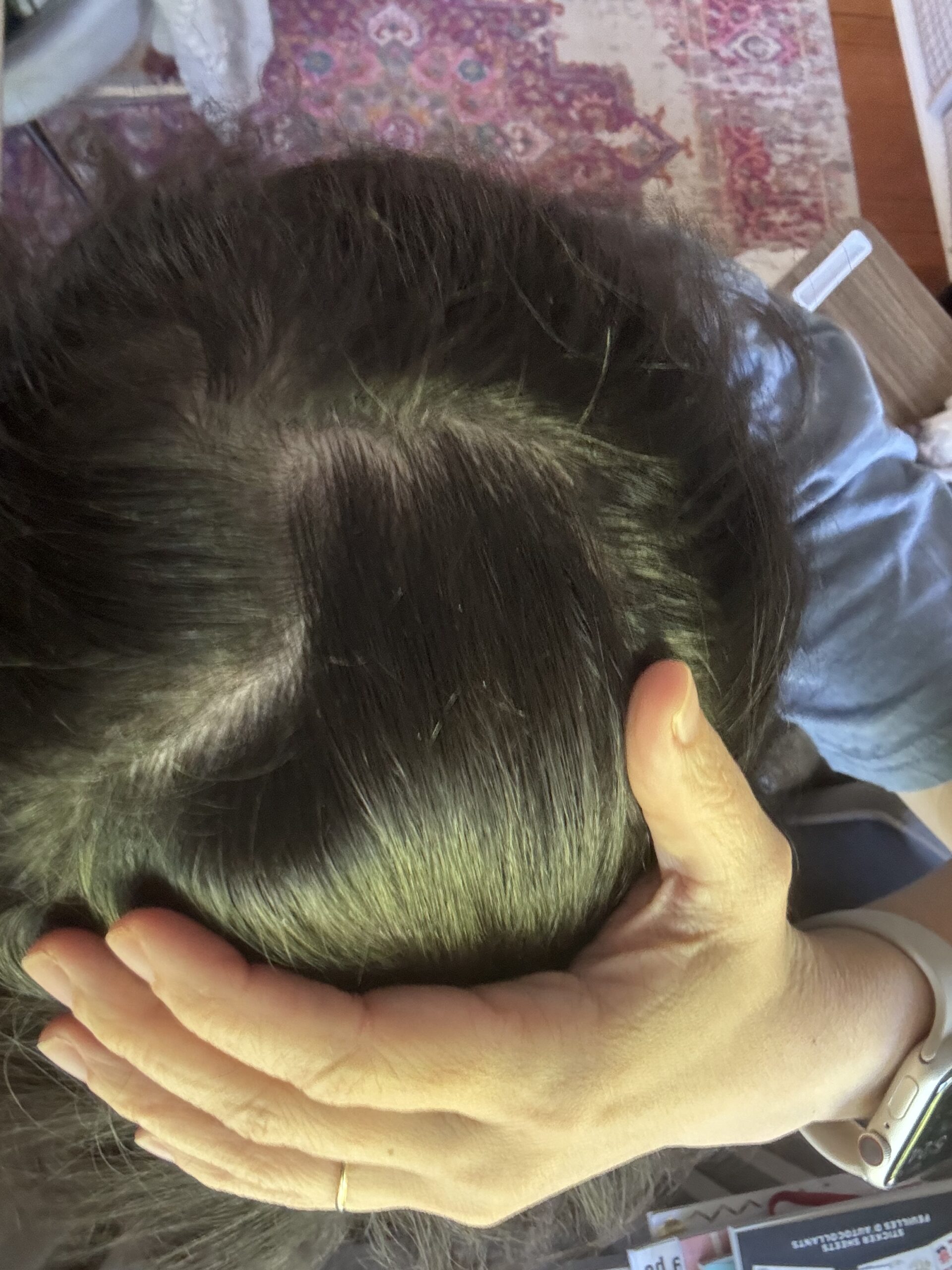 I got really good at flipping my part around and letting whatever version of bangs or face-framing layers were in vogue disguise the thin sections of my hairline. I learned my angles for photos and I worked them. I never got to the bottom of the issue, but I was good at fluffing out my volume and natural curls to more or less help me keep the whole thing out of sight and out of mind.