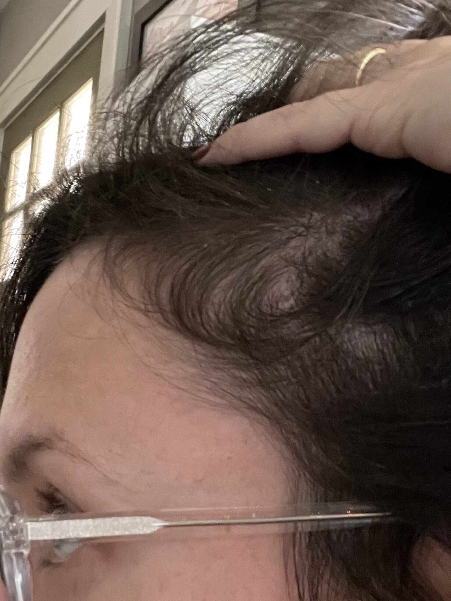 And then I had a child in my early thirties. Several months postpartum, the soft little short hairs that had never seemed to grow on my temples did something totally new. They all fell out.