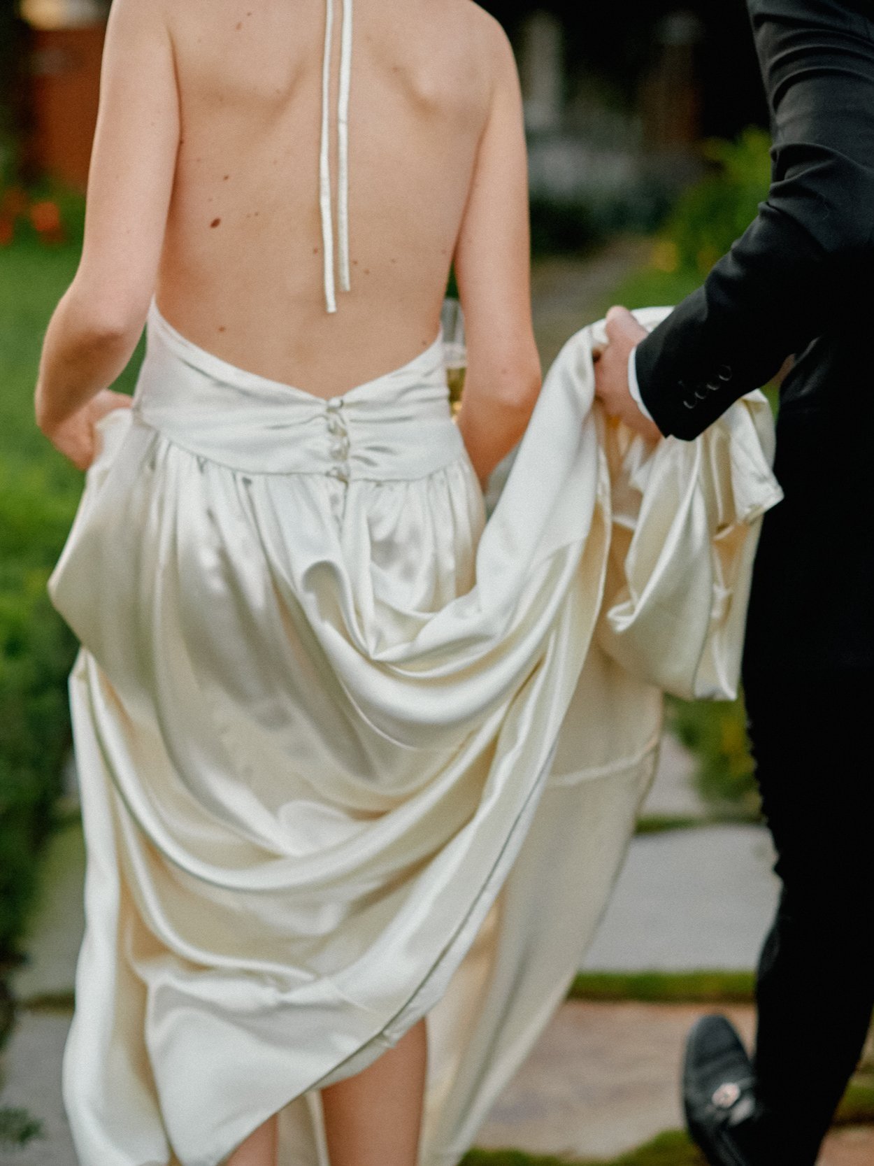 When I first slipped the dress on, it fit but needed a bit of a rework to bring it up to date. I had a general idea of silhouettes that I liked but knew I wanted the help of a designer to really reimagine it. Through a past collaboration with my line Ceremony, I was familiar with LEIN Studio’s non-traditional approach to wedding attire. So Meredith, their founder and designer, was my first call.