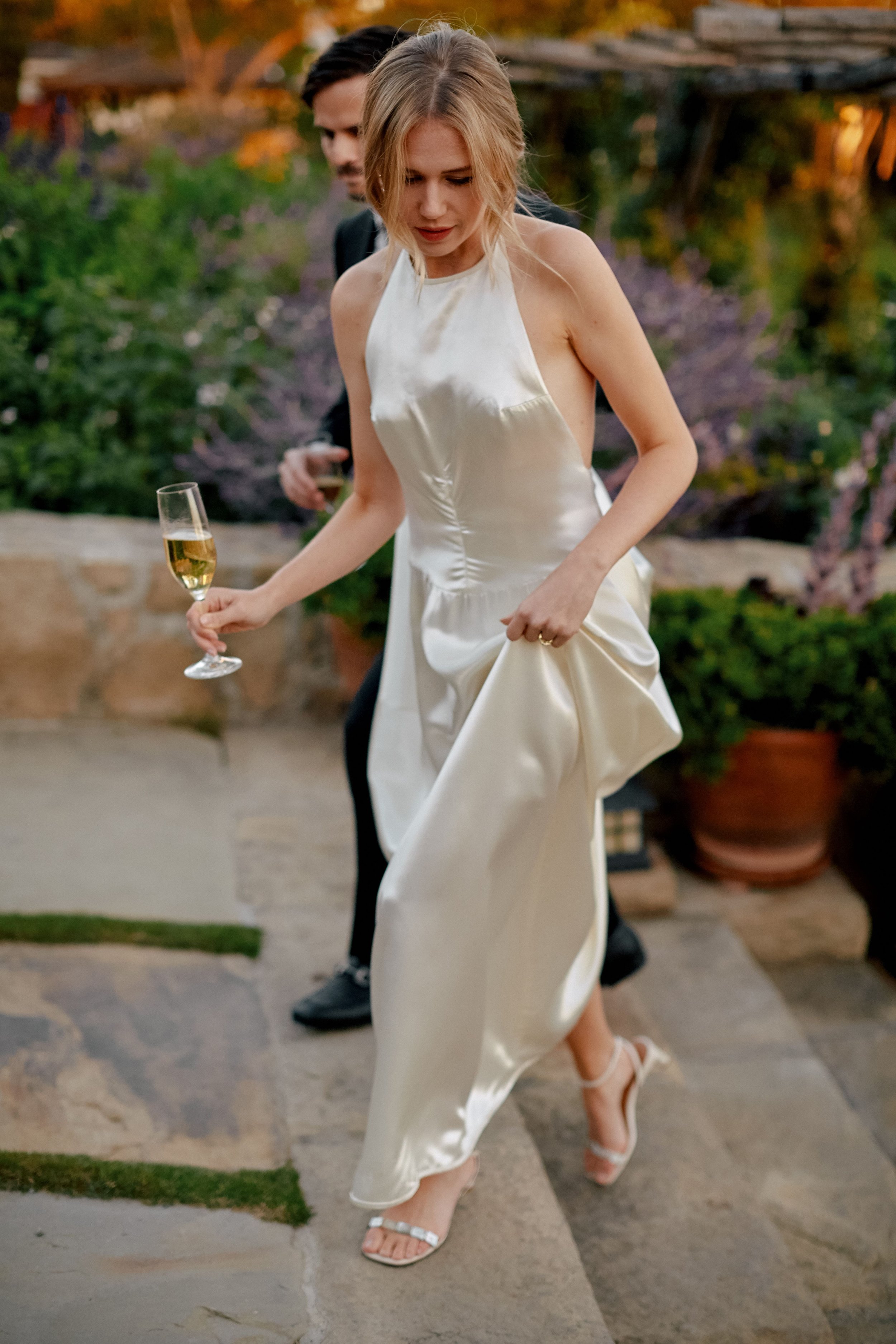 Conscious sourcing is at the heart of Ceremony, the line of commitment rings I co-founded in 2018—all our rings are designed using 100 percent recycled diamonds and post-consumer recycled gold—and I felt strongly about wearing a wedding dress that would align with both my personal values and the intention and sourcing philosophies behind Ceremony.