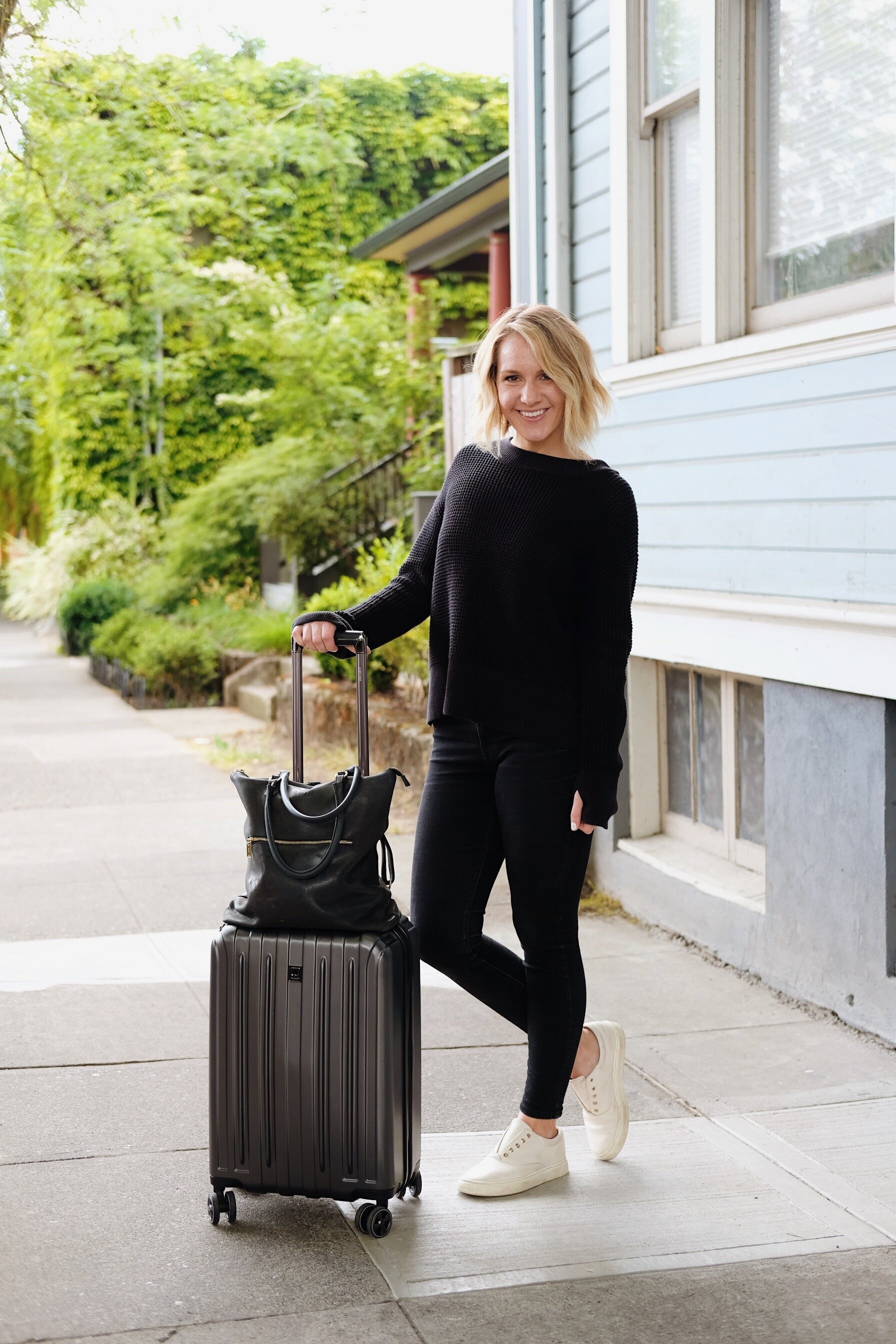Travel Day! I spent all day flying to Ireland where I met up with my husband for a fun press trip that I got to tag along on. I’m always cold on airplanes, so I opted for my favorite sweater and an all-black ensemble for the long journey.