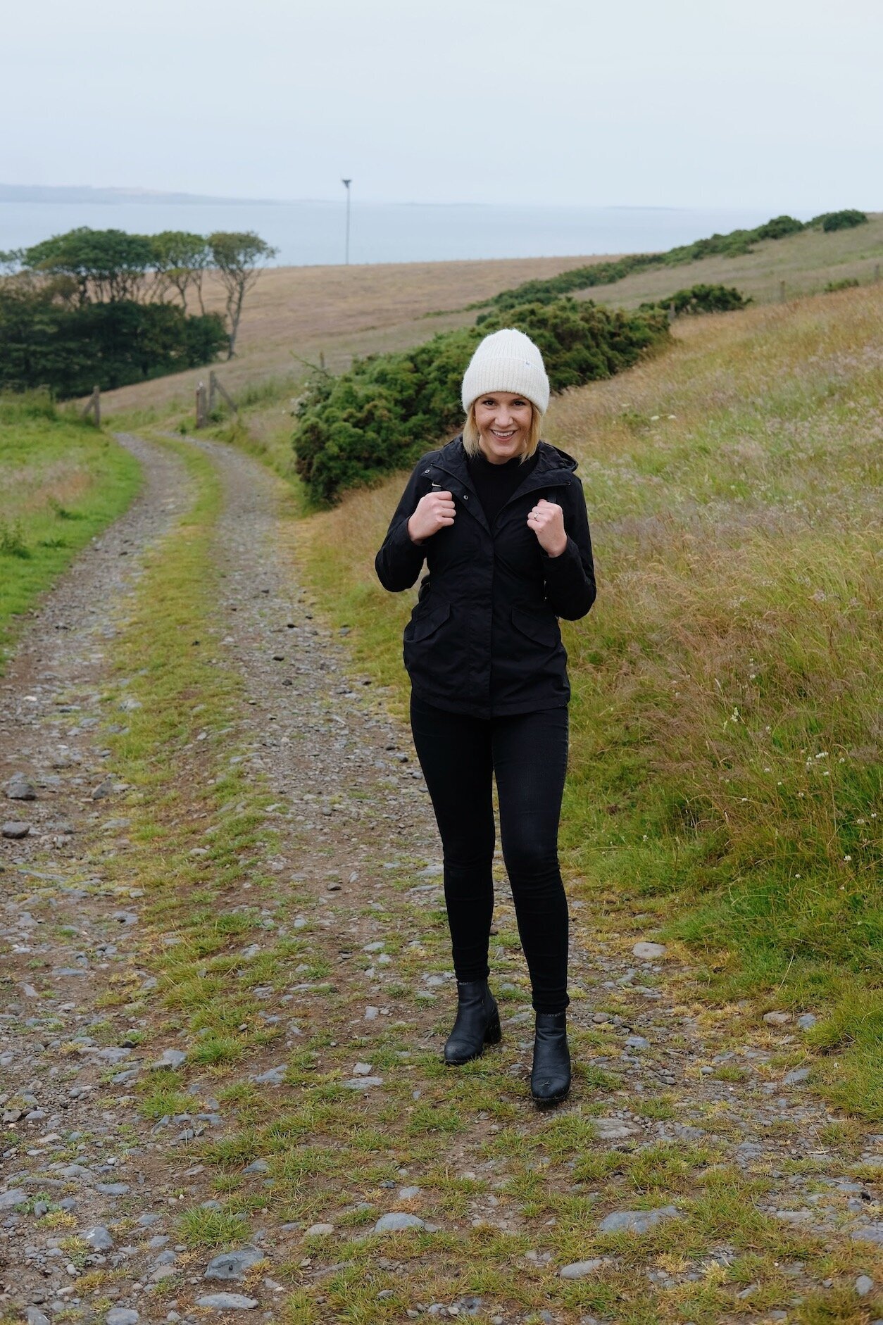 A truly adventurous day, I donned the same pant/boot combination as the day before (outfit repeating is a big part of my life). I needed the weather-proof boots, raincoat, and beanie to take me through a rainy morning of trail hiking and castle exploring and an afternoon spent chasing waterfalls.