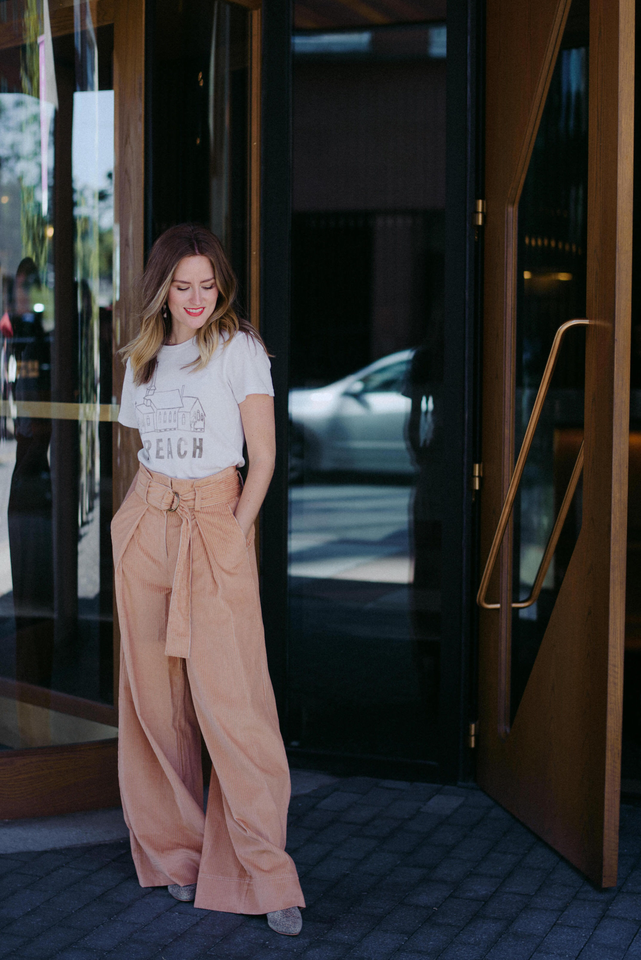 I love everything that Ulla Johnson does. Amazing fabrics and textures. I call these my power pants, and I think they might be more effective than a blazer. I wear these to meetings when I need to make a good first impression. When your pants are that extra, all of the accessories may as well be too. So I snuck in some leopard in my shoes, and some really fun statement earrings. I wore a t-shirt to keep this outfit more casual, but I dress it up with an Everlane cashmere sweater when it gets cooler outside.