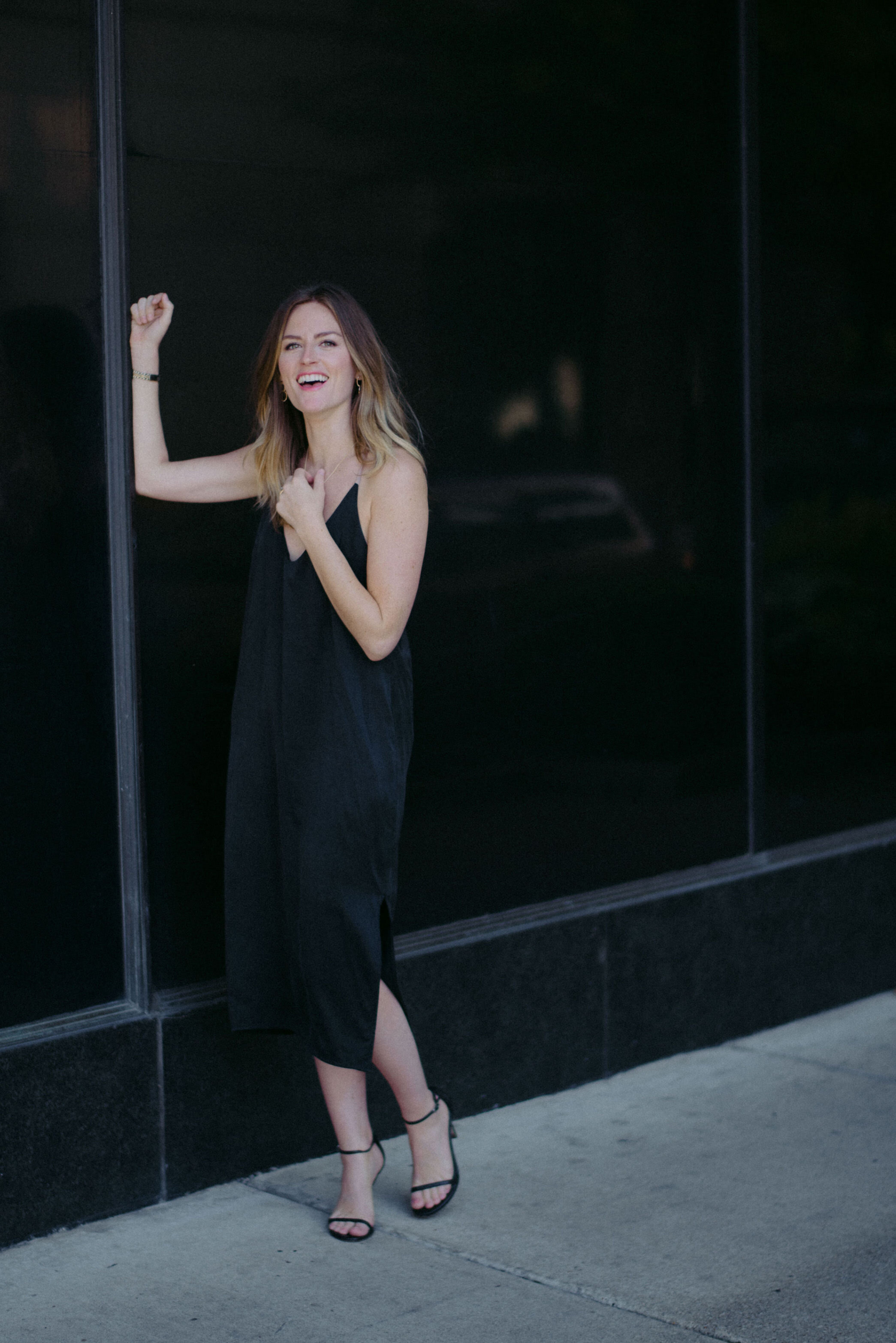 Party trick—wear your nightgown out on the town! I picked this silk nightgown up in New York, and have been wearing it to fancy events ever since. The blush straps and t-shaped back make this dress more interesting than my typical LBDs. It’s also easy to dress down with slides for a more casual date night look.