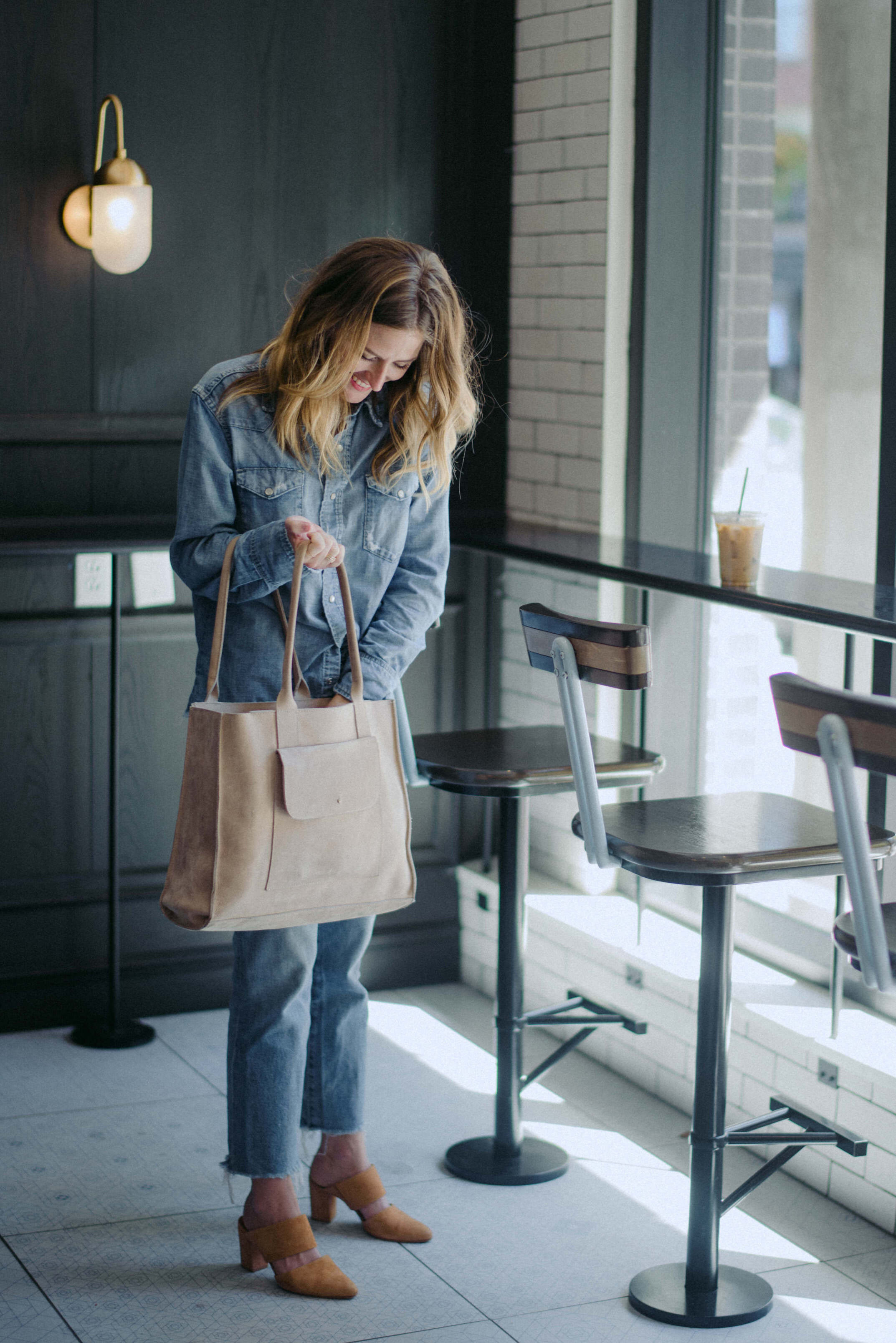 When in doubt—denim on denim on denim. Our Western Shirt at ABLE is probably my most-worn item in my closet. I pack this outfit when I travel because it’s so versatile. I can wear the denim shirt open over a tee or as-is. Especially in Nashville, this outfit works for almost anything I have on my calendar.