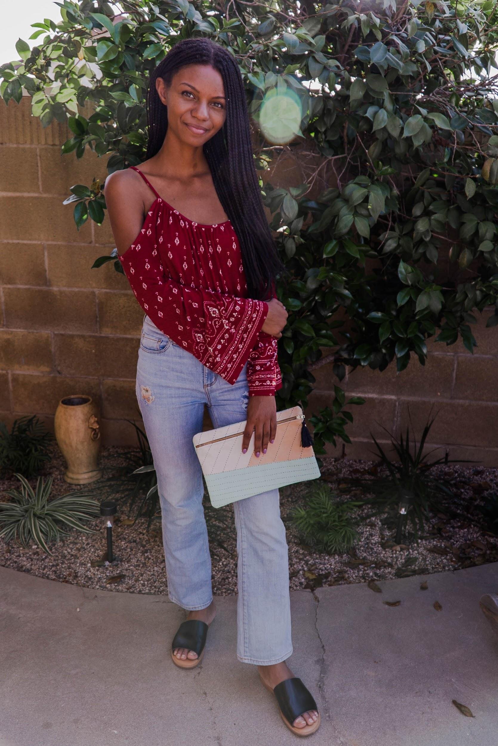 On Sundays I like to be a little more relaxed and wear clothes that are airy. I got these Vera Wang jeans from Goodwill and the clutch from social enterprise Anchal Project. The shirt is from a clothing swap event at school and the shoes are thrifted target overstock from Goodwill as well.
