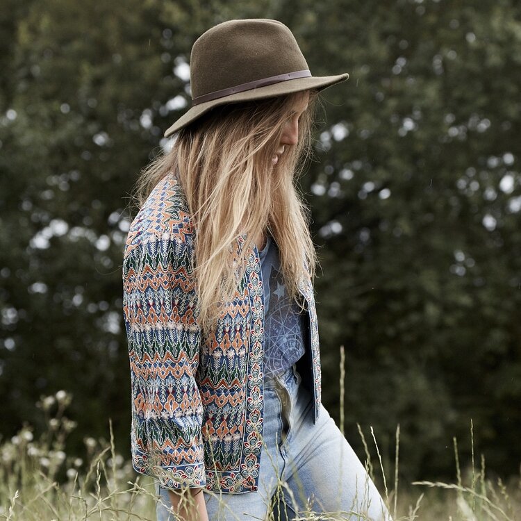 Victoria Road NY Mariam Jacket in Winter Garden Embroidery | Secondhand Tank | Vintage Hat