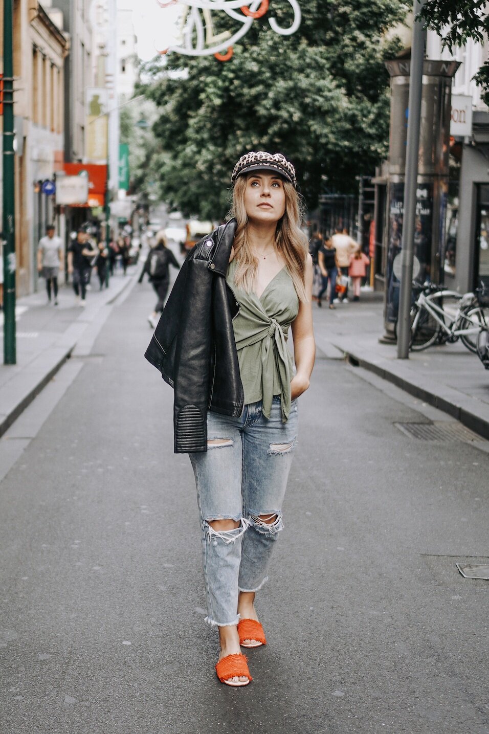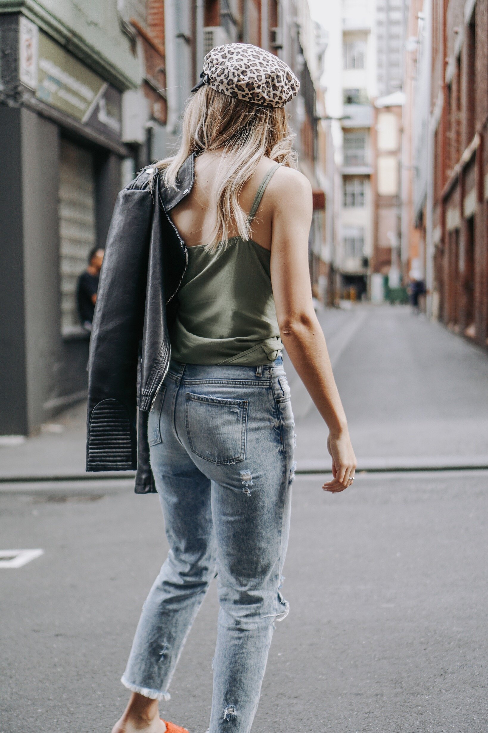 eTruism top Thrifted jeans Pre-loved jacket Thrifted hat Ocelot Market flats