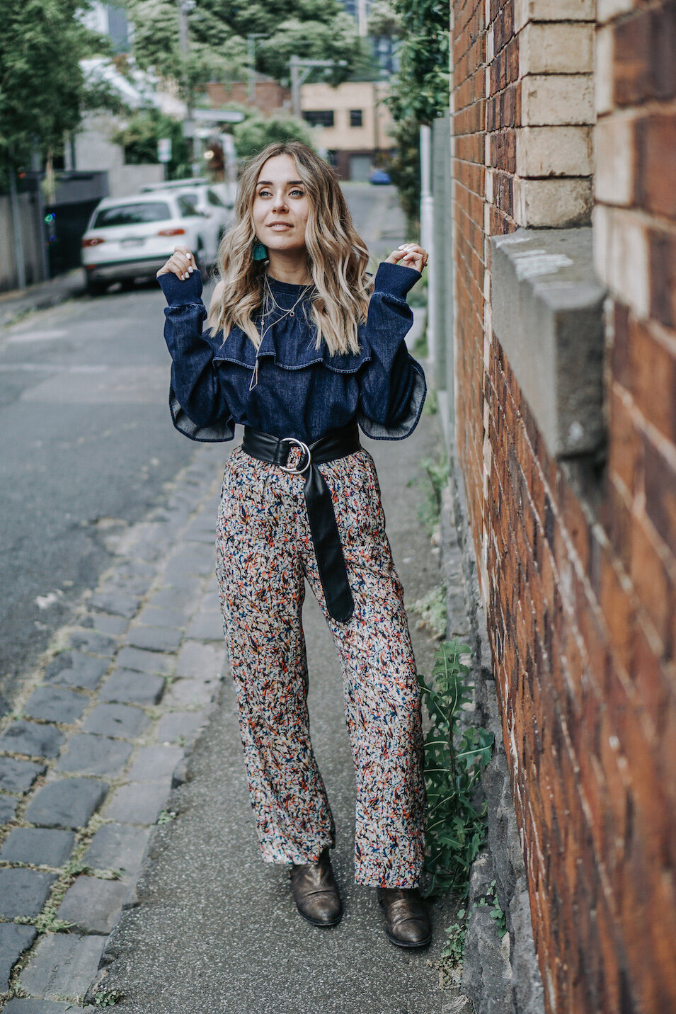 Top from SwapSociety Thrifted pants Thrifted belt Matisse Footwear booties The Chestnut Forge jewelry