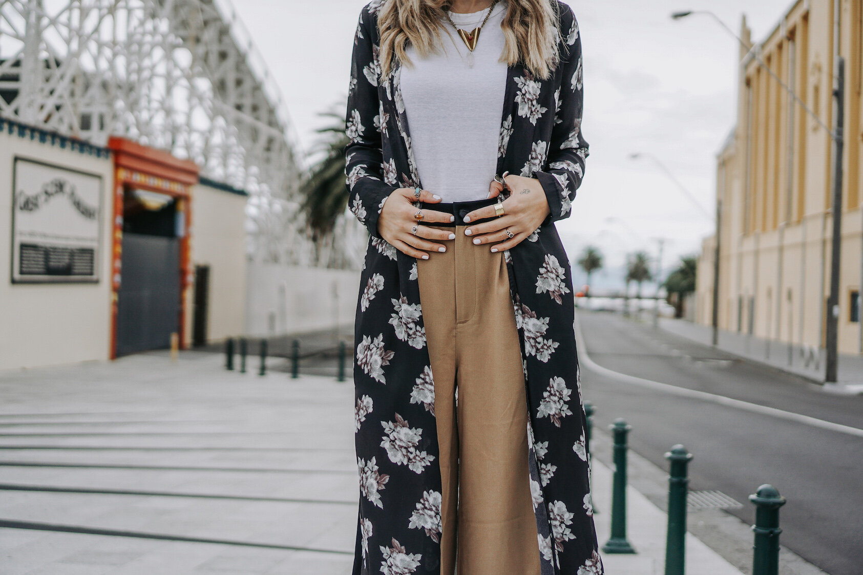 Isabel Marant top Duster from SwapSociety Kindom pants Thrifted necklace Thrifted boots Handmade rings acquired over the years, including Lucy & Jo