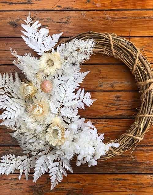 For wreaths made and shipped locally within Australia, Vintage Haze Blooms is a gorgeous one-stop shop. The brand uses dried blooms, pampas grass, palm leaves, and more to create essential works of art you’ll love. These wreaths are made to order, too, then shipped in eco-friendly wrapping with carbon-neutral delivery. Seasonal and sustainable!